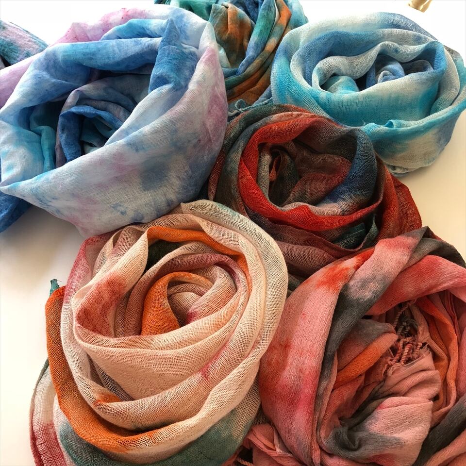 ストールの手染めは柄や色合いがランダムなので色々とお楽しみいただけます