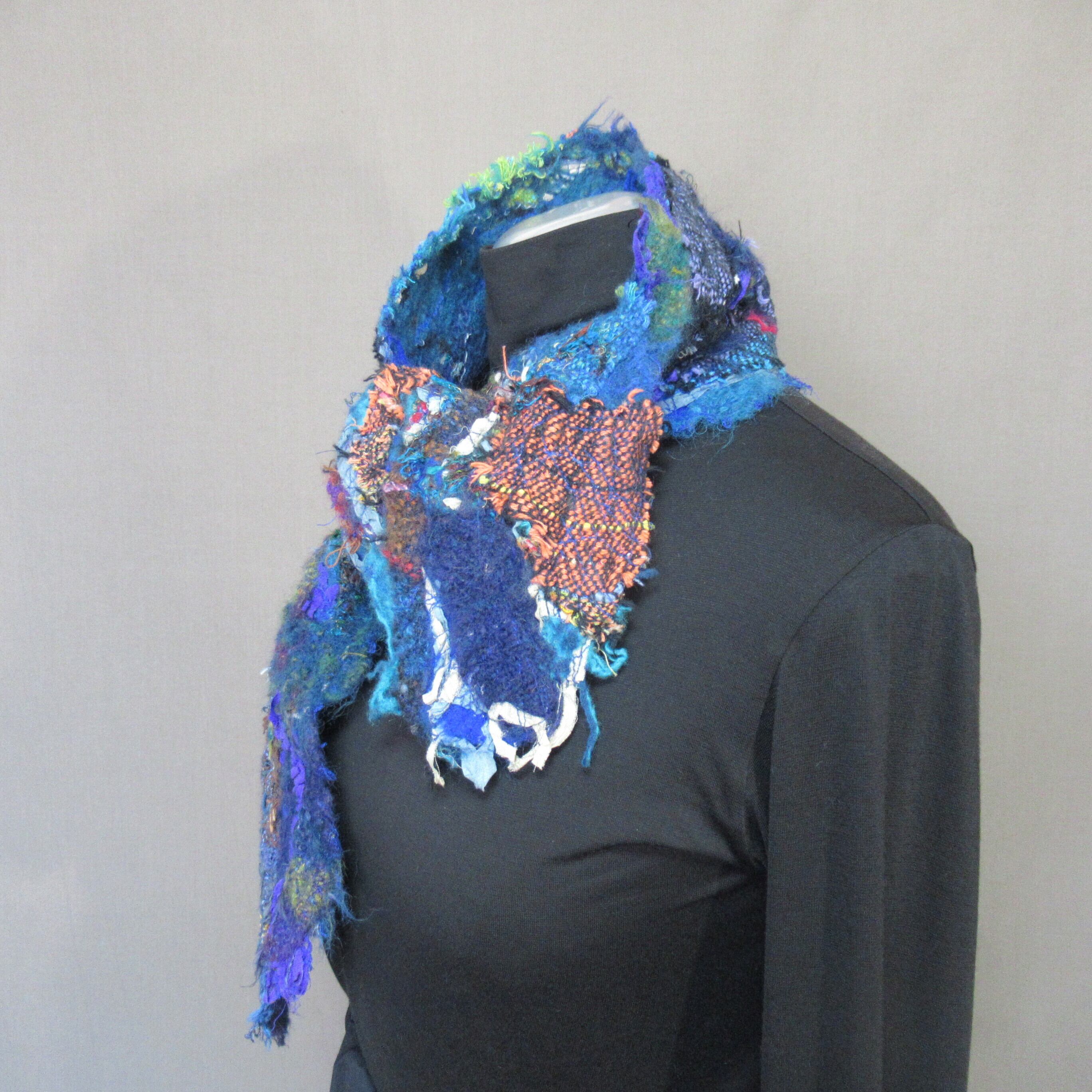 手織布や織り糸やウール原毛等を合わせてデザインした当店オリジナルマフラーです。