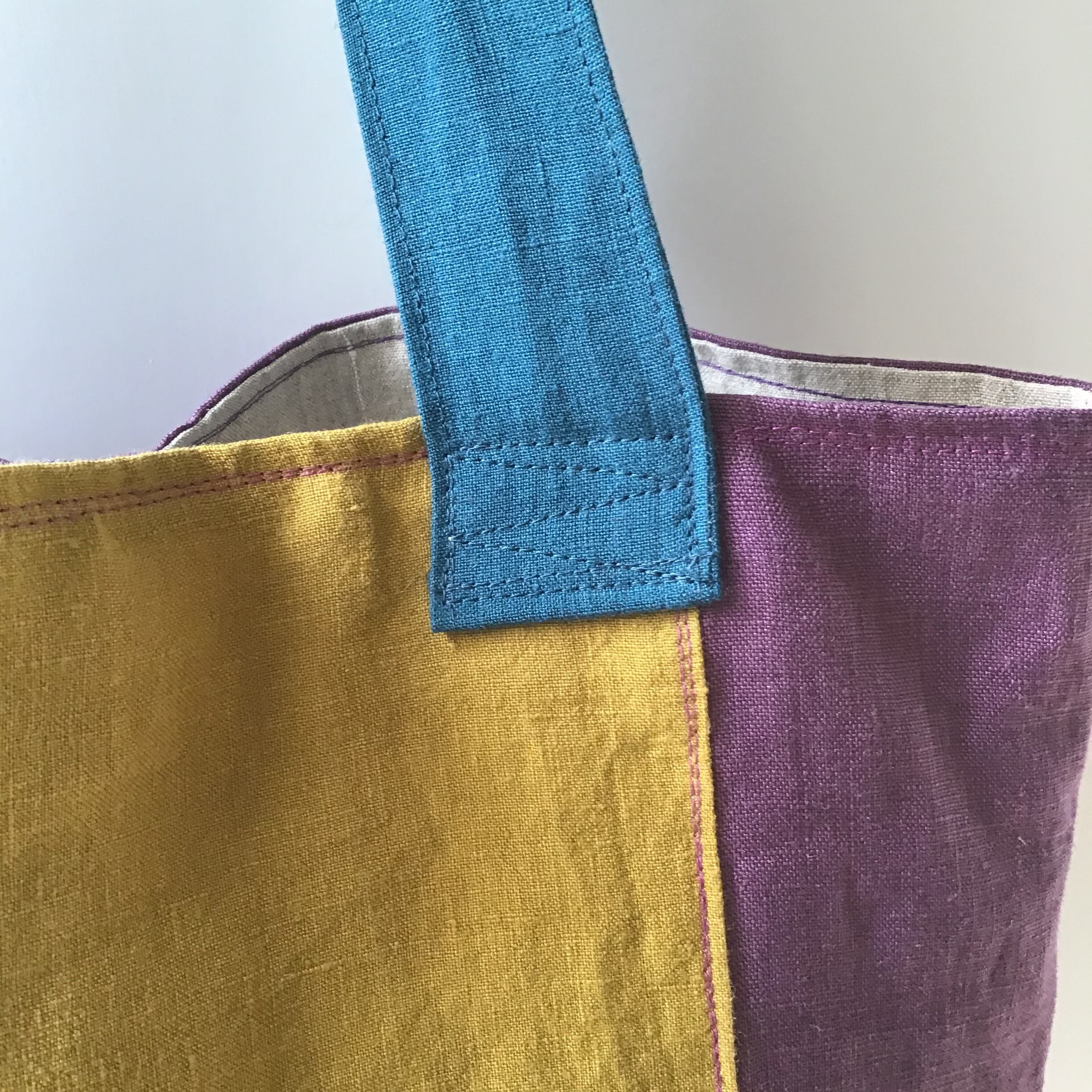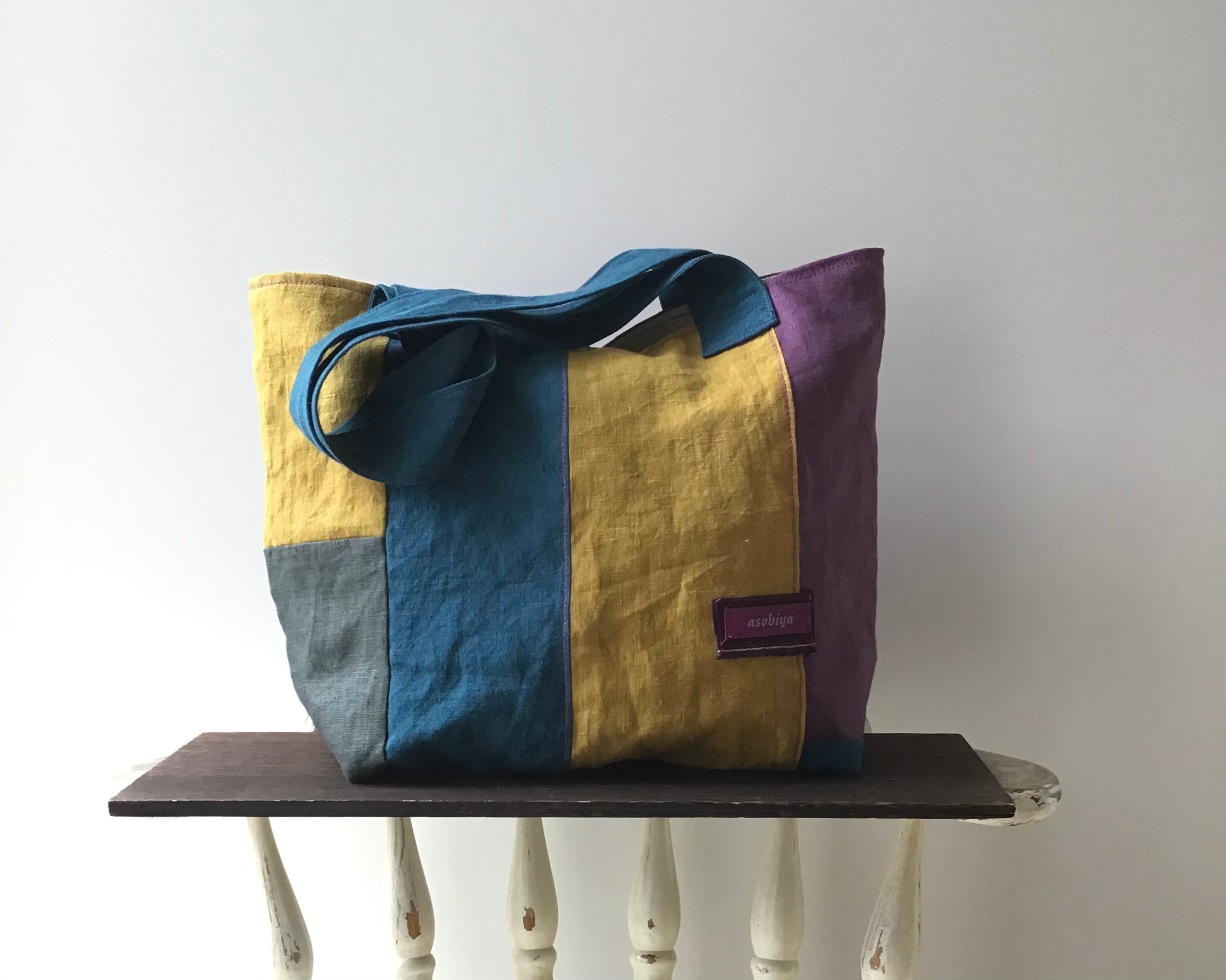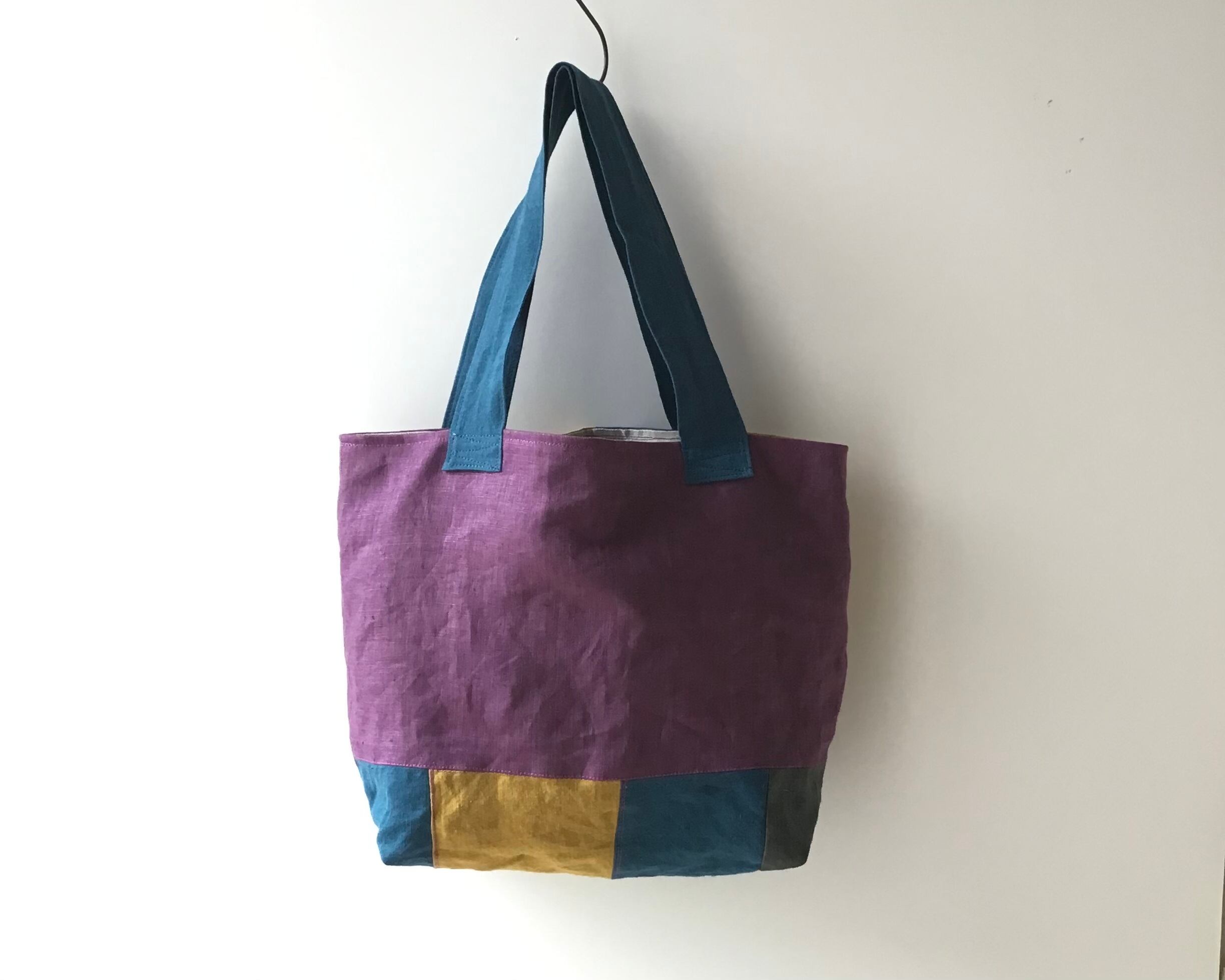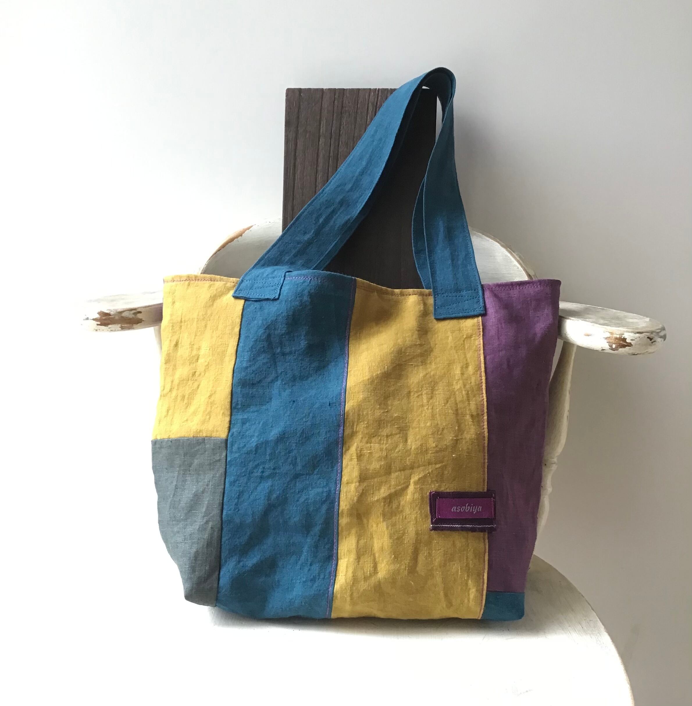 作家の自由な発想と遊び心たっぷりのリネンパッチのトートバッグです